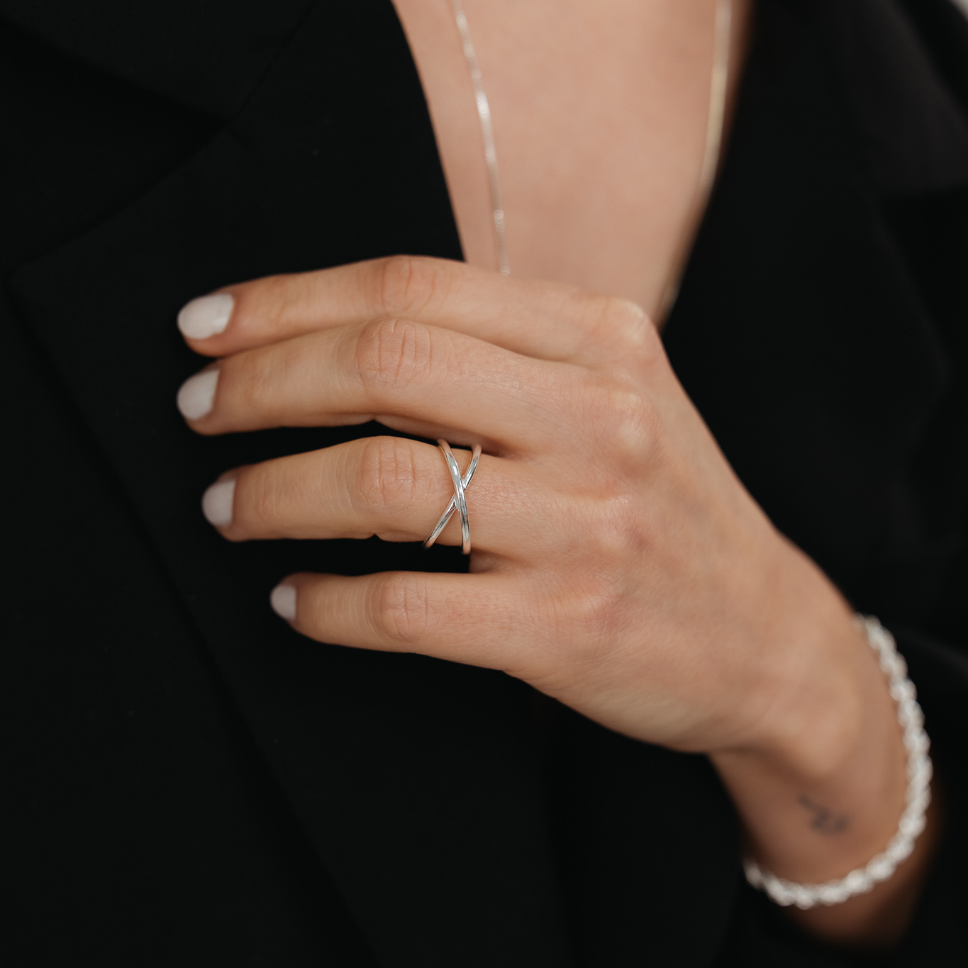 Anello a fili incrociati liscio, dal design elegante e moderno, perfetto per valorizzare qualsiasi look. I fili intrecciati creano un effetto raffinato e armonioso, mentre la superficie liscia aggiunge un tocco minimalista. Ideale da indossare da solo o abbinato ad altri anelli, un accessorio versatile e senza tempo per ogni occasione.