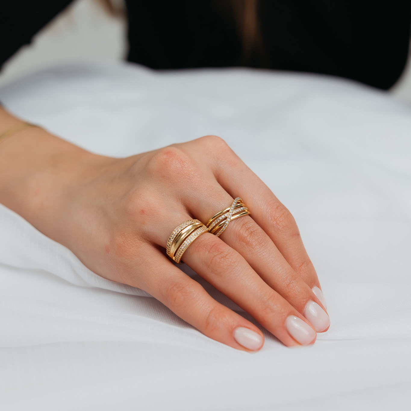 Anello a tre fili con due crivellati, elegante e raffinato, dal design moderno e armonioso. I due fili crivellati aggiungono un tocco di brillantezza, mentre il terzo filo liscio mantiene il gioiello minimalista e versatile. Perfetto da indossare da solo o abbinato ad altri anelli, ideale per aggiungere un dettaglio sofisticato al look quotidiano o a occasioni speciali.
