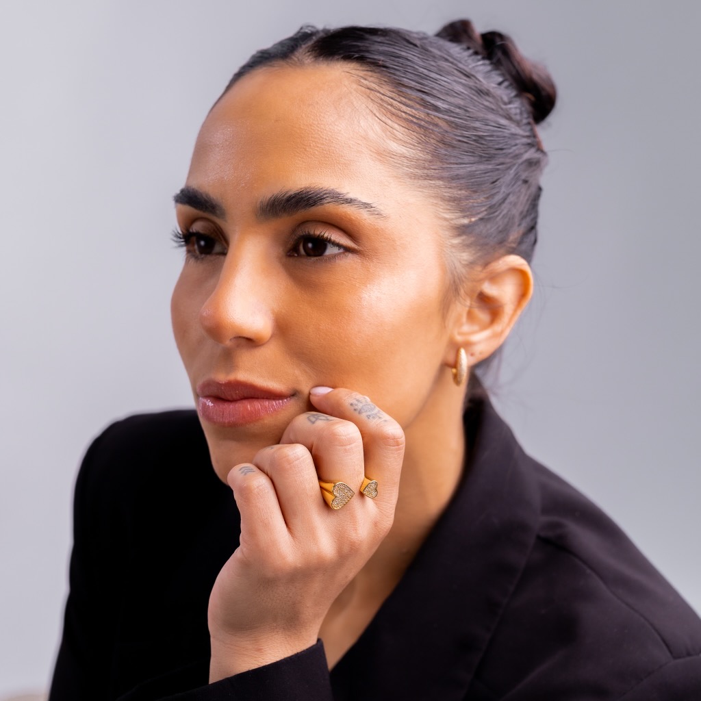 Anello con due cuori crivellati, elegante e romantico. I cuori impreziositi da pietre scintillanti catturano la luce, aggiungendo brillantezza e raffinatezza alle mani. Leggero e versatile, è perfetto da indossare da solo o in abbinamento ad altri anelli, creando un look femminile e sofisticato. Un gioiello ideale per esprimere amore e stile in ogni occasione.