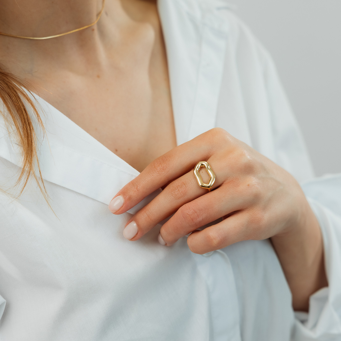 L’Anello Forma Organica Rettangolare è un gioiello unico, che combina la forza geometrica del rettangolo con linee fluide e naturali, ispirate alle forme organiche della natura. Il risultato è un design armonioso, originale e contemporaneo, perfetto per chi cerca un accessorio distintivo ed elegante. Questo anello valorizza la mano con leggerezza e comfort, adattandosi sia a look quotidiani sia a occasioni speciali. Ogni pezzo è leggermente unico grazie alle curve naturali del suo design, esprimendo autenticità e stile personale.