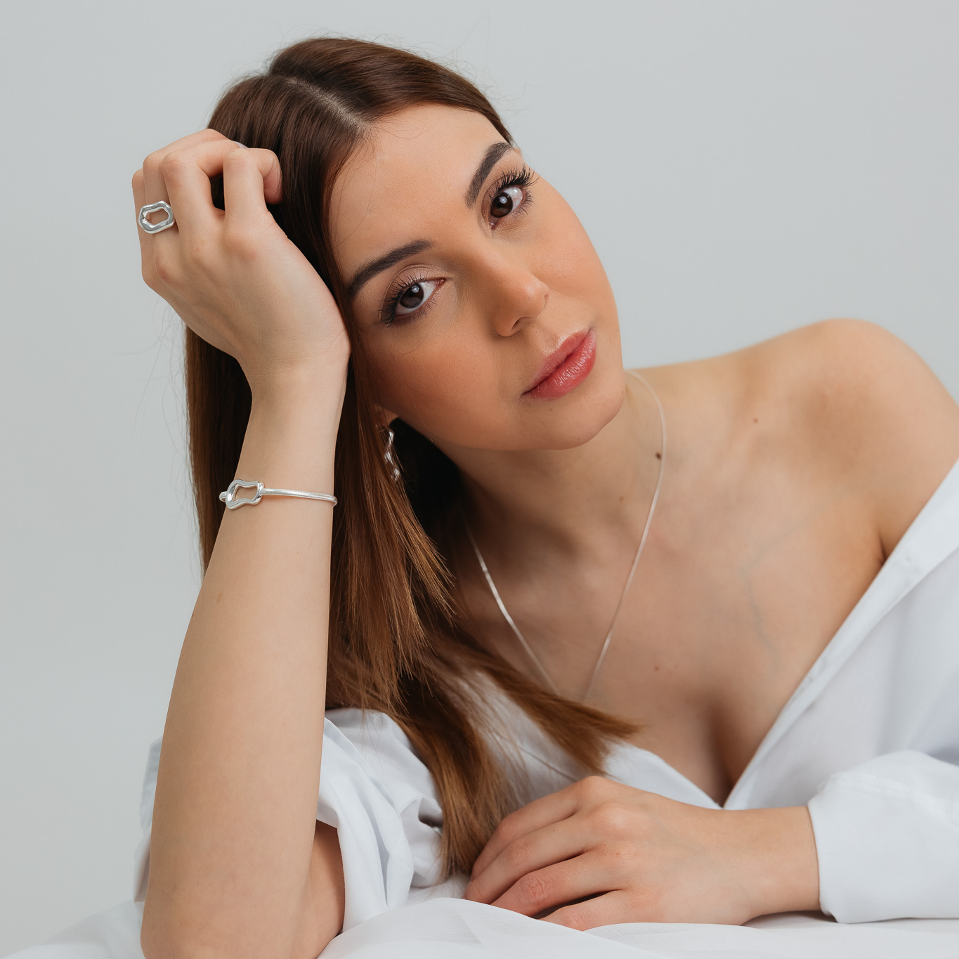 L’Anello Forma Organica Rettangolare è un gioiello unico, che combina la forza geometrica del rettangolo con linee fluide e naturali, ispirate alle forme organiche della natura. Il risultato è un design armonioso, originale e contemporaneo, perfetto per chi cerca un accessorio distintivo ed elegante. Questo anello valorizza la mano con leggerezza e comfort, adattandosi sia a look quotidiani sia a occasioni speciali. Ogni pezzo è leggermente unico grazie alle curve naturali del suo design, esprimendo autenticità e stile personale.