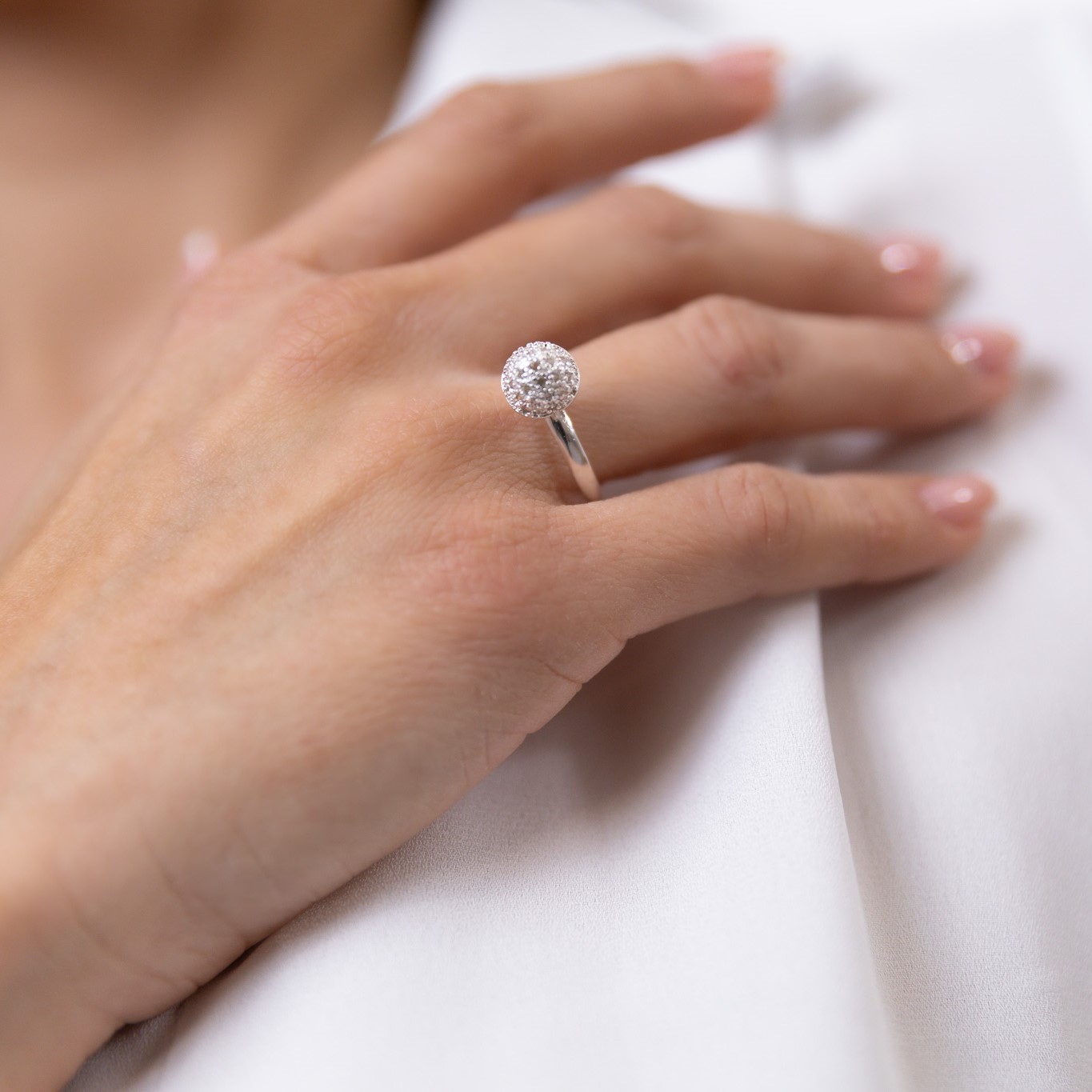 Anello rotondo piccolo crivellato, elegante e raffinato, impreziosito da piccole pietre che catturano la luce ad ogni movimento. Il design rotondo e compatto lo rende perfetto da indossare da solo o abbinato ad altri anelli, ideale per aggiungere un tocco di brillantezza discreta al look quotidiano o per occasioni speciali. Un gioiello versatile e senza tempo.