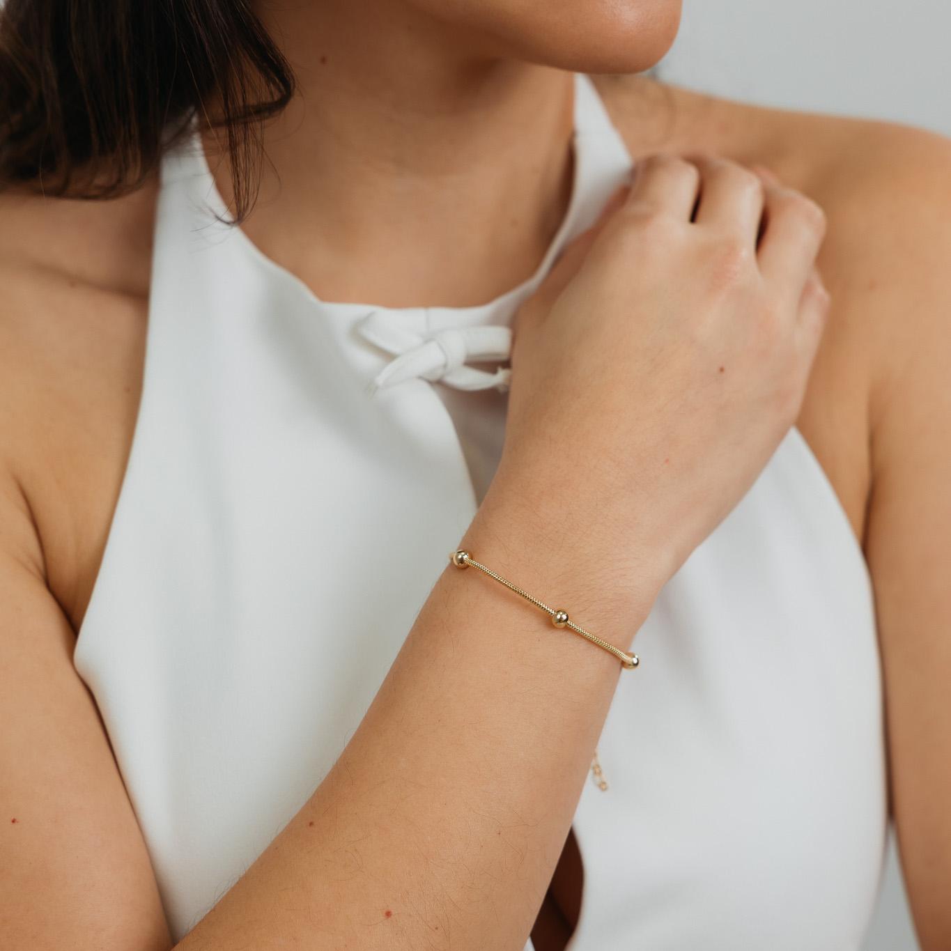 Bracciale a catena con pallina, dal design delicato e raffinato, ideale per aggiungere un tocco di eleganza a qualsiasi look. La pallina centrale dona equilibrio e luminosità al gioiello, rendendolo perfetto sia da indossare da solo che abbinato ad altri bracciali. Un accessorio versatile, adatto all’uso quotidiano e alle occasioni speciali.