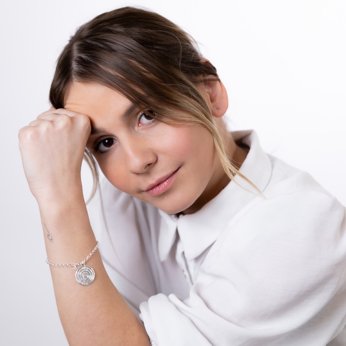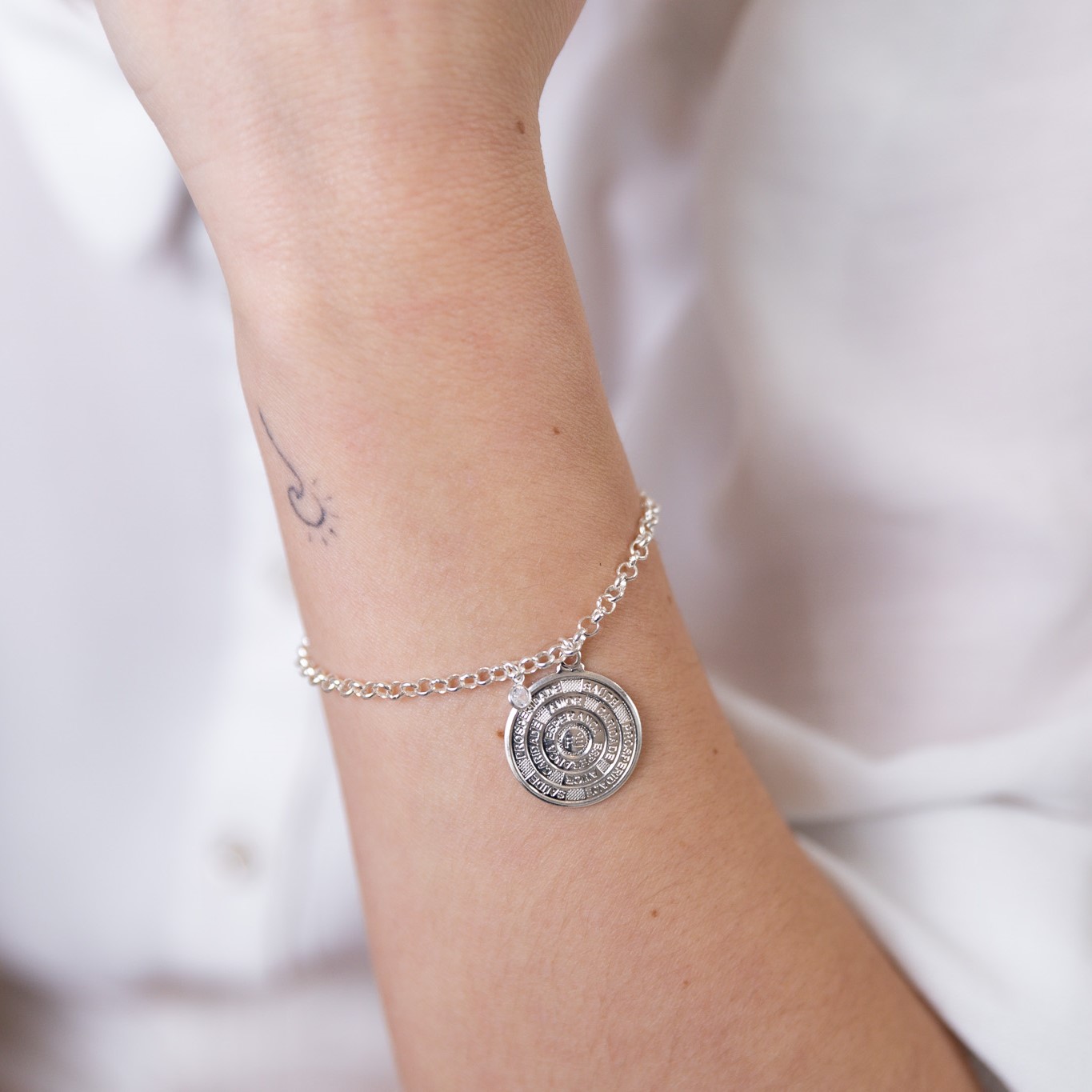 Il bracciale con medaglia e punto luce pendente è una raffinata espressione di stile e luminosità. La medaglia dona un tocco classico e senza tempo, mentre il punto luce pendente aggiunge brillantezza e modernità. Leggero e versatile, è l’accessorio ideale per completare un look sofisticato e contemporaneo, creando al polso un’armonica fusione tra tradizione ed eleganza moderna.