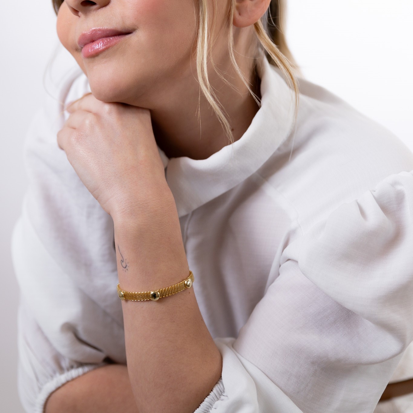 Il Bracciale con Sfere Spesse è un’opzione dal design robusto e di carattere. Le sfere spesse aggiungono un tocco di sostanza e modernità al bracciale. Leggero e versatile, è perfetto per un look audace e alla moda, conferendo al polso un tocco distintivo. Un accessorio che si fa notare per il suo stile unico e la sua presenza raffinata.
