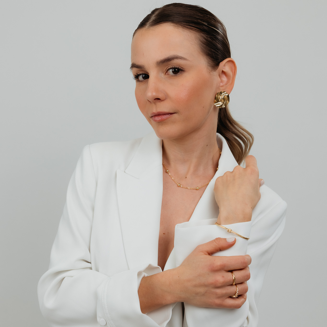 Bracciale intrecciato, elegante e moderno, dal design raffinato e dinamico. Le linee intrecciate creano movimento e stile, rendendo il bracciale perfetto da indossare da solo come pezzo principale del look o in combinazione con altri accessori. Un gioiello versatile e senza tempo, adatto sia all’uso quotidiano che a occasioni speciali.