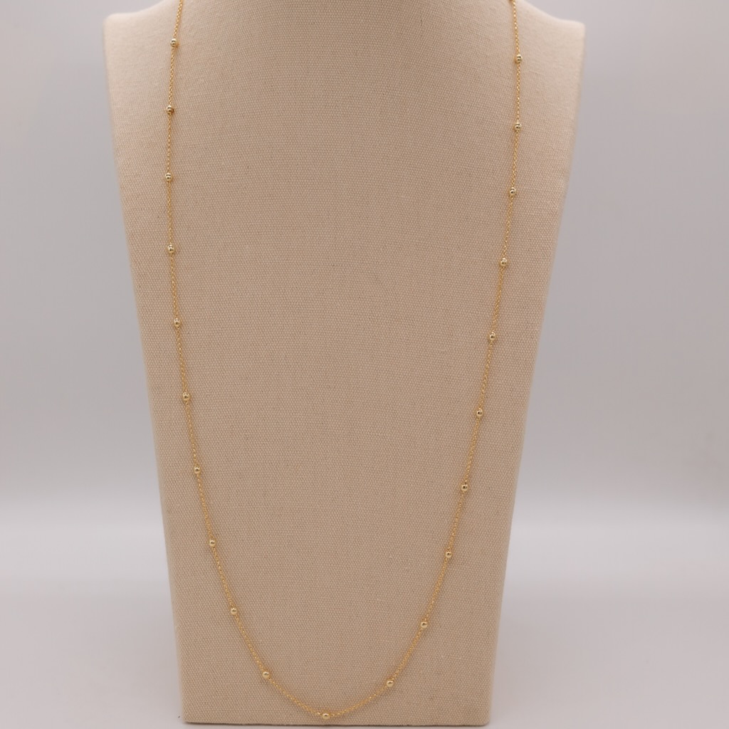 Collana con boline lisce: un accessorio dal design semplice e raffinato, arricchito da piccole boline lisce che catturano delicatamente la luce. Questa collana aggiunge un tocco di eleganza discreta al tuo look, perfetta da indossare da sola per un effetto minimalista o in combinazione con altri gioielli per un look più elaborato. Versatile, leggera e sofisticata, è ideale sia per l’uso quotidiano che per occasioni speciali, elevando ogni outfit con stile e semplicità.