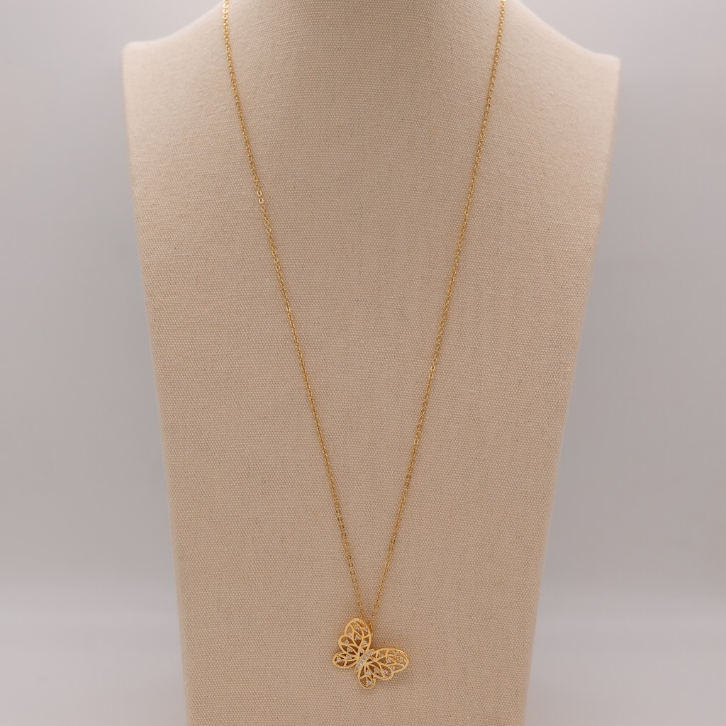 Collana con ciondolo a forma di farfalla con pietre: un gioiello elegante e femminile che cattura lo sguardo. Il delicato pendente a forma di farfalla, impreziosito da pietre scintillanti incastonate, aggiunge un tocco di luce e colore al tuo look. Simbolo di libertà, trasformazione e bellezza, la farfalla dona un tocco romantico e contemporaneo. Leggera e versatile, questa collana è perfetta da indossare ogni giorno o per occasioni speciali, aggiungendo un tocco di fascino e raffinatezza.