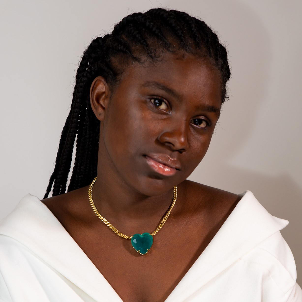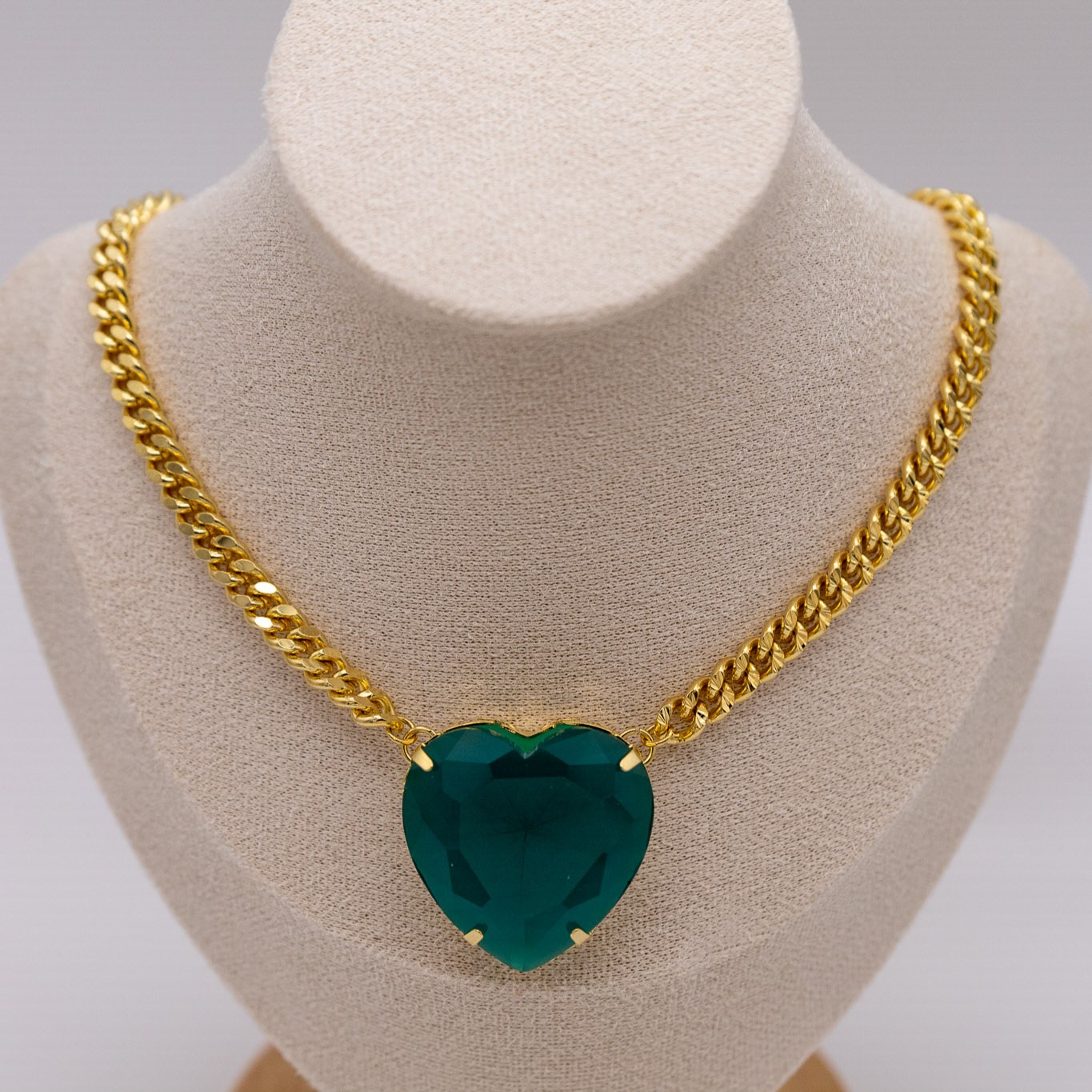 Elegante e raffinata, questa collana con cuore verde è un gioiello che unisce stile e significato. Il pendente a forma di cuore, impreziosito da una pietra o cristallo verde, cattura la luce e aggiunge un tocco di colore luminoso al tuo look. Simbolo di armonia, vitalità e amore, questo accessorio è perfetto sia per il quotidiano sia per occasioni speciali. La catena delicata e il design moderno la rendono un pezzo versatile da indossare da sola o da abbinare ad altri gioielli per un effetto ancora più sofisticato.
