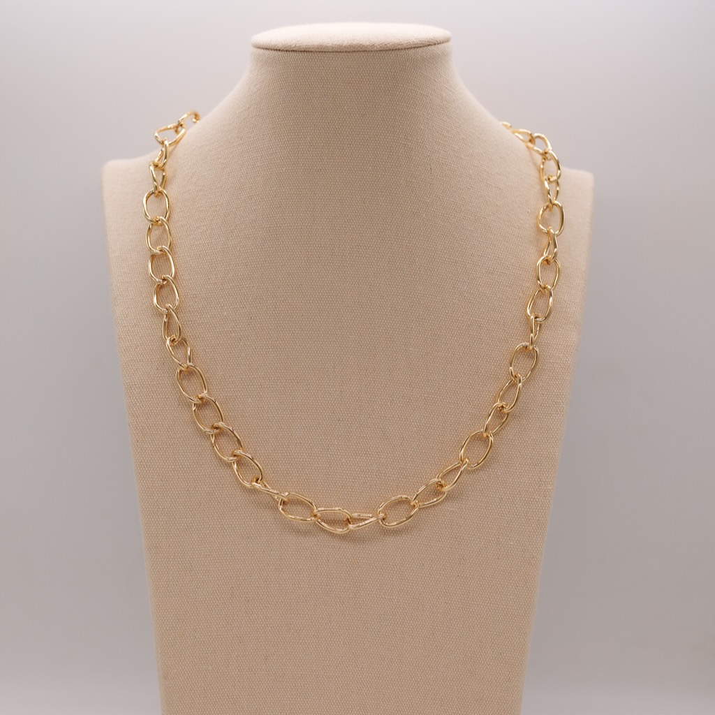La Collana con Maglia Ovale incarna l’eleganza senza tempo. Le maglie ovali creano una testure raffinata e distintiva, perfetta per un look sofisticato. Leggera e confortevole, questa collana si adatta a qualsiasi occasione, conferendo un tocco di classe discreta al tuo collo. Un accessorio versatile e di stile che si adatta perfettamente a ogni outfit.li.