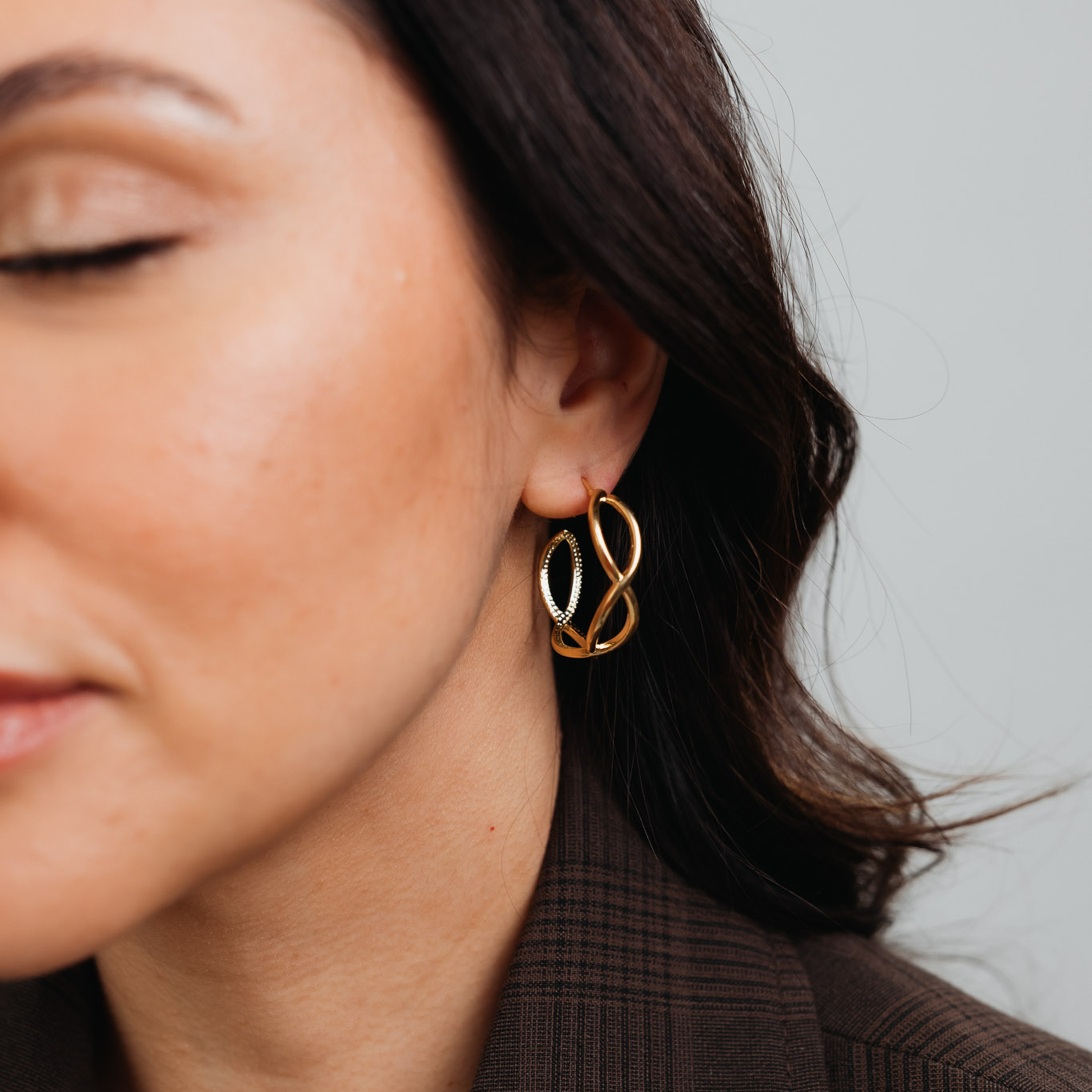 Orecchini a cerchio intrecciati, eleganti e moderni, perfetti per chi ama gioielli di carattere. I design intrecciati conferiscono movimento e stile agli orecchini, rendendoli ideali da indossare da soli come pezzo principale del look. Accessori versatili e sofisticati, adatti sia all’uso quotidiano che a occasioni speciali.