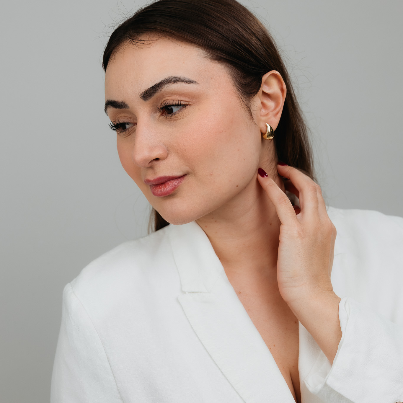 Orecchini a goccia lisci di misura S, caratterizzati da un design delicato ed essenziale. Le finiture lisce e le proporzioni compatte li rendono accessori eleganti e discreti, perfetti per l’uso quotidiano o per chi predilige gioielli minimal e raffinati. Modelli versatili, ideali da indossare da soli o abbinati ad altri orecchini.