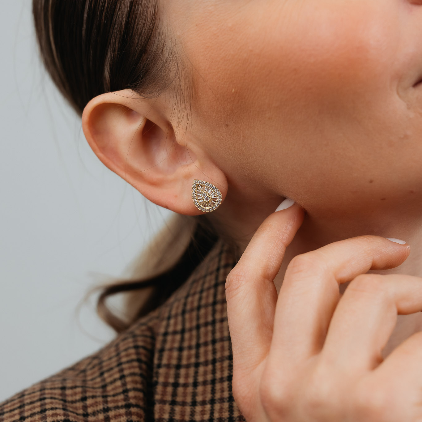 Orecchini a goccia piccoli con cristalli, eleganti e luminosi, perfetti per aggiungere un tocco di raffinatezza a qualsiasi look. I cristalli scintillanti conferiscono brillantezza e glamour, mentre la forma compatta li rende versatili e facili da indossare sia quotidianamente che in occasioni speciali. Accessori delicati e femminili, ideali da abbinare ad altri gioielli o da indossare da soli come punto luce del look.