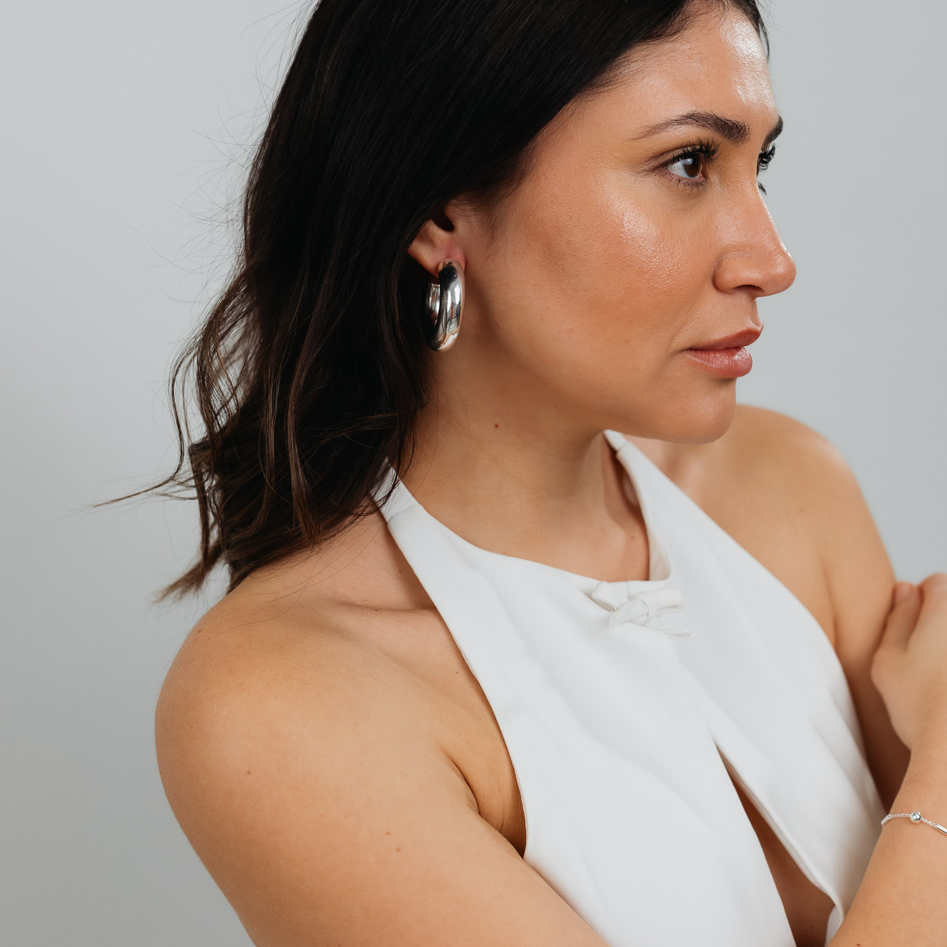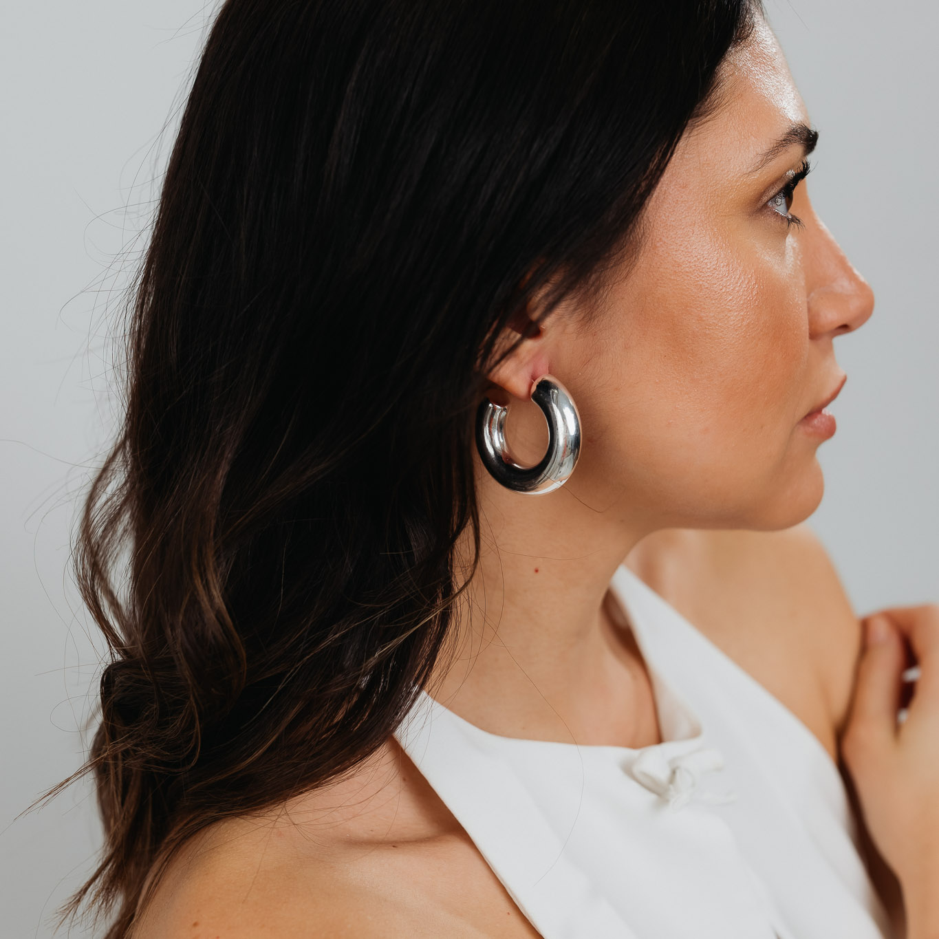 Orecchini a mezza argola spessi, dal design moderno e deciso, ideali per valorizzare qualsiasi look. Le loro forme pulite e il volume importante donano un tocco contemporaneo, perfetti sia per l’uso quotidiano che per occasioni speciali. Accessori versatili che uniscono stile e carattere.