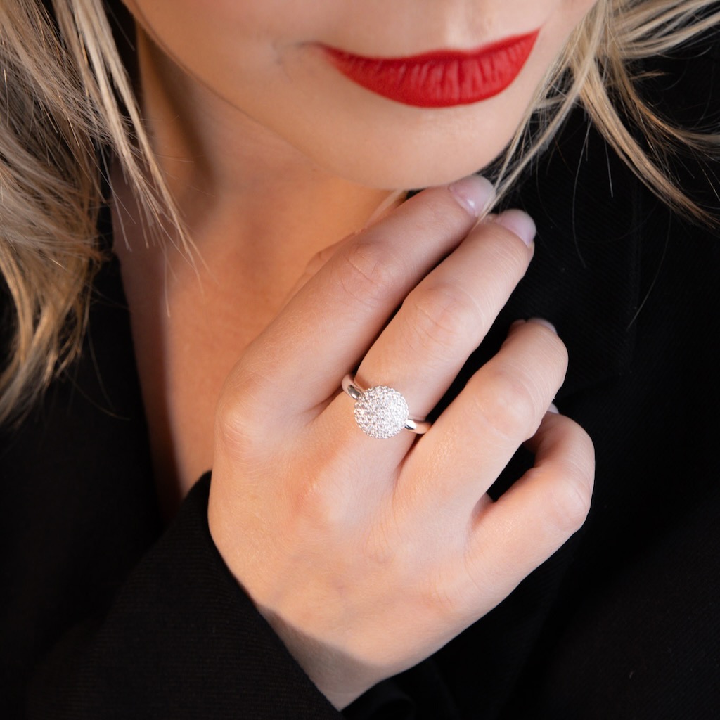 Com design marcante e contemporâneo, este anel grande de formato redondo apresenta uma superfície crivellada que cria textura e profundidade, refletindo a luz de forma elegante. O estilo orgânico e o acabamento detalhado conferem personalidade à peça, tornando-a ideal para quem busca um acessório moderno e expressivo. Perfeito para valorizar produções do dia a dia ou composições mais sofisticadas.