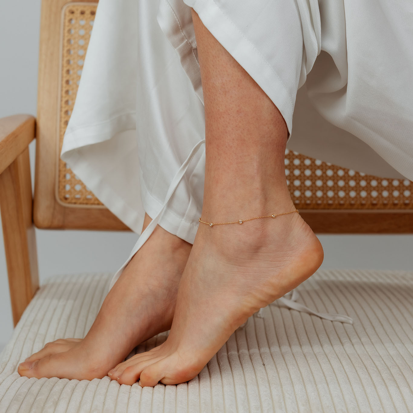 Illumina il tuo stile con questa elegante cavigliera arricchita da raffinati punti luce, perfetti per donare un tocco di brillantezza discreta e sofisticata. Ideale per la stagione estiva o per valorizzare ogni outfit con un dettaglio luminoso, questa cavigliera è leggera, comoda e facile da abbinare. Perfetta anche come idea regalo delicata e alla moda.