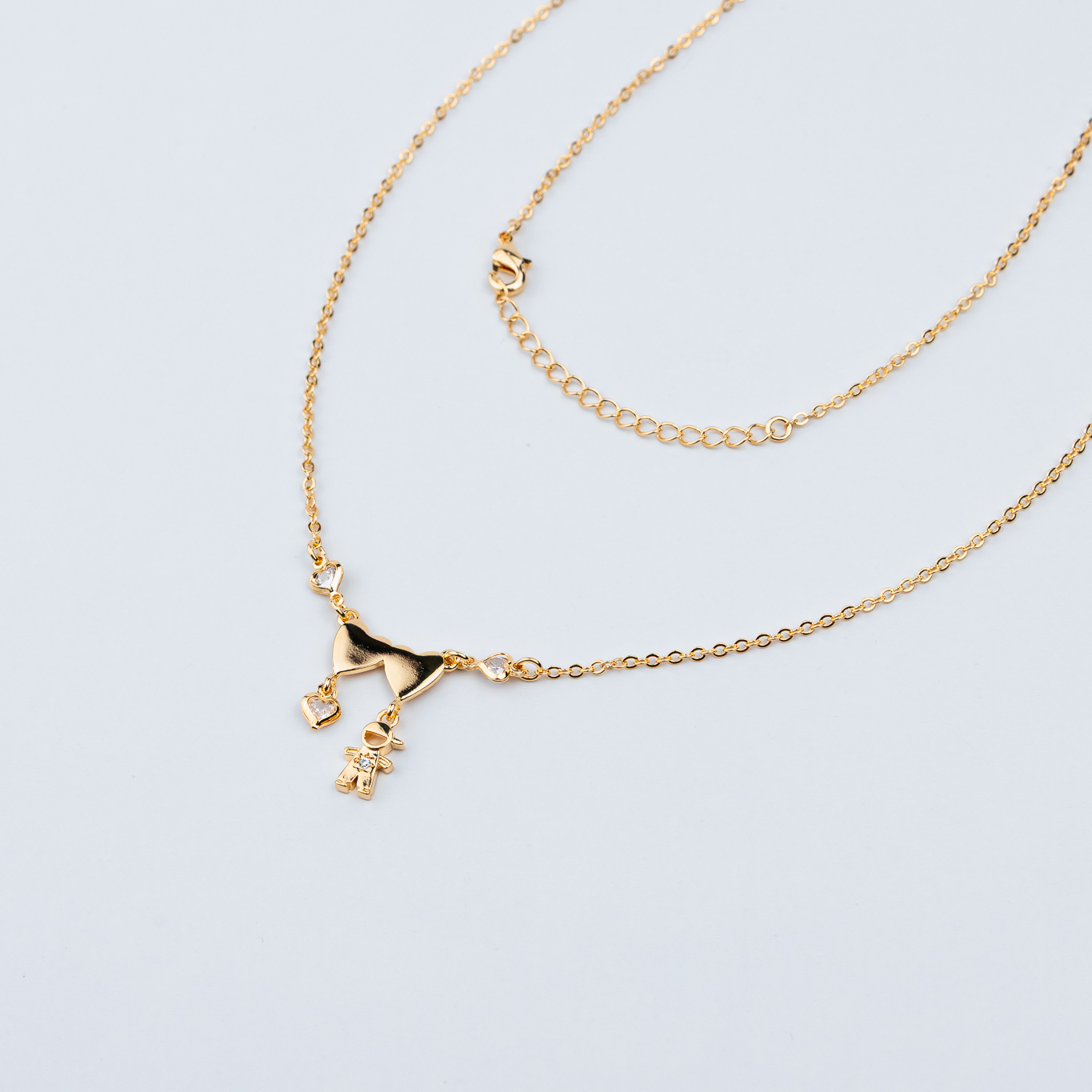 COLLANA FIGLIO CON DUE CUORI LISCI E UN PUNTO LUCE