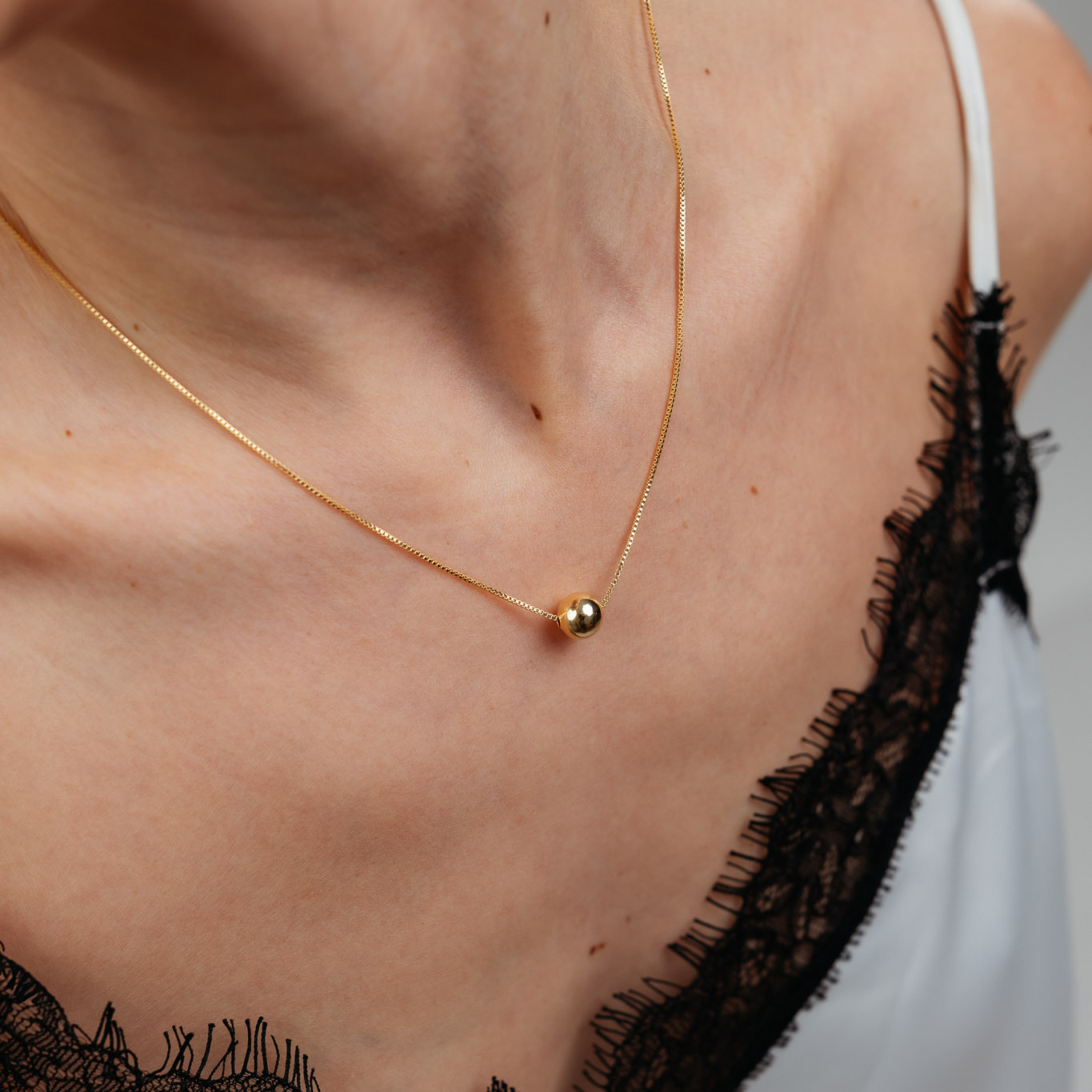 Elegante e minimalista, questa collana con sfera liscia è un gioiello versatile e intramontabile. La sua forma pura e armoniosa la rende ideale da indossare tutti i giorni, aggiungendo un tocco di raffinata eleganza a qualsiasi look, dal più casual al più sofisticato.
