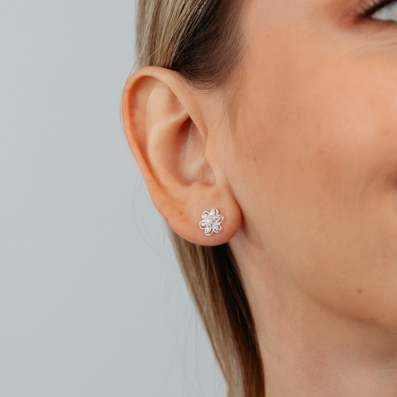 Delicati ed eleganti, questi orecchini a forma di fiore sono impreziositi da piccoli zirconi che catturano la luce con brillantezza, donando un tocco di raffinatezza e femminilità a ogni look. Il design armonioso e raffinato li rende perfetti per valorizzare sia outfit quotidiani che abiti per occasioni speciali.